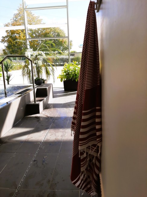 Serviette de plage, fabriquée avec du fil de coton biologique, certifié GOTS, tissé à la main sur métier à navette, coloration à base de plantes.