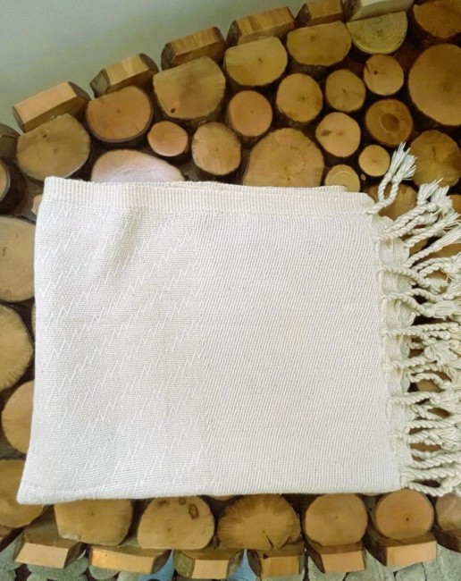 Fabriquée avec du fil de coton biologique, certifié GOTS, tissé à la main sur métier à navette, coloration à base de plantes.